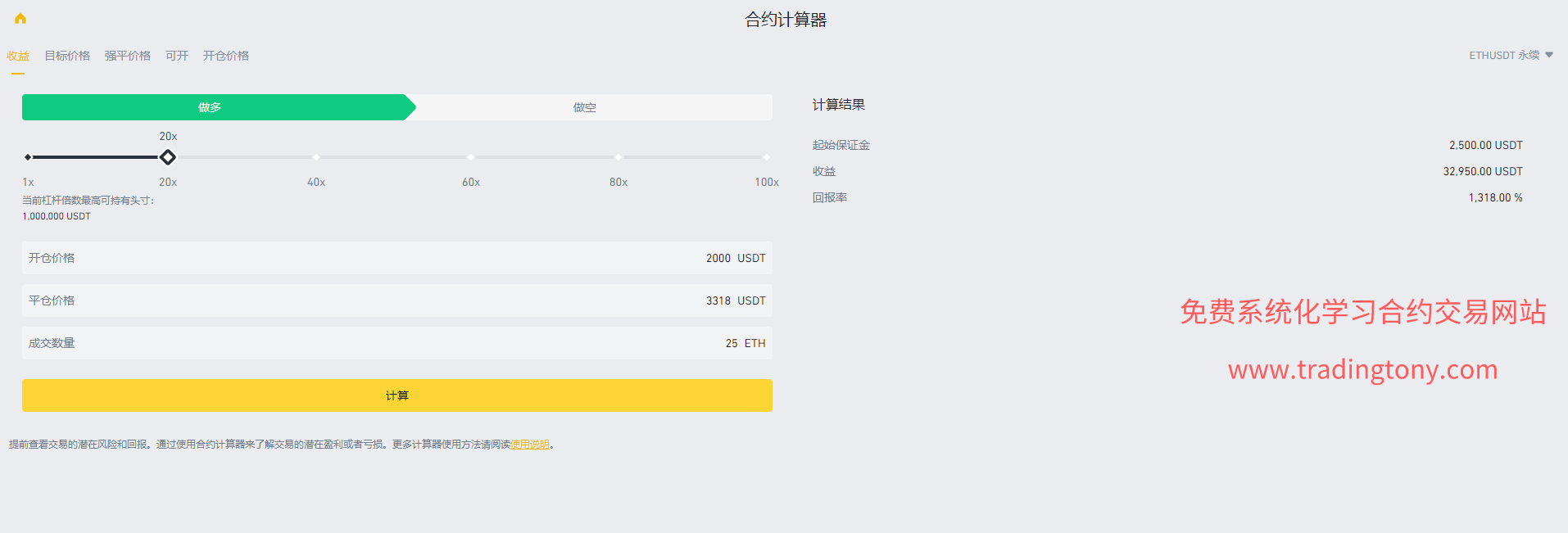 binance的计算器结果,这还是在不滚仓的情况下,所以说,你的本金多寡很重要吗,重要的抓对趋势,做对方向,耐心持有