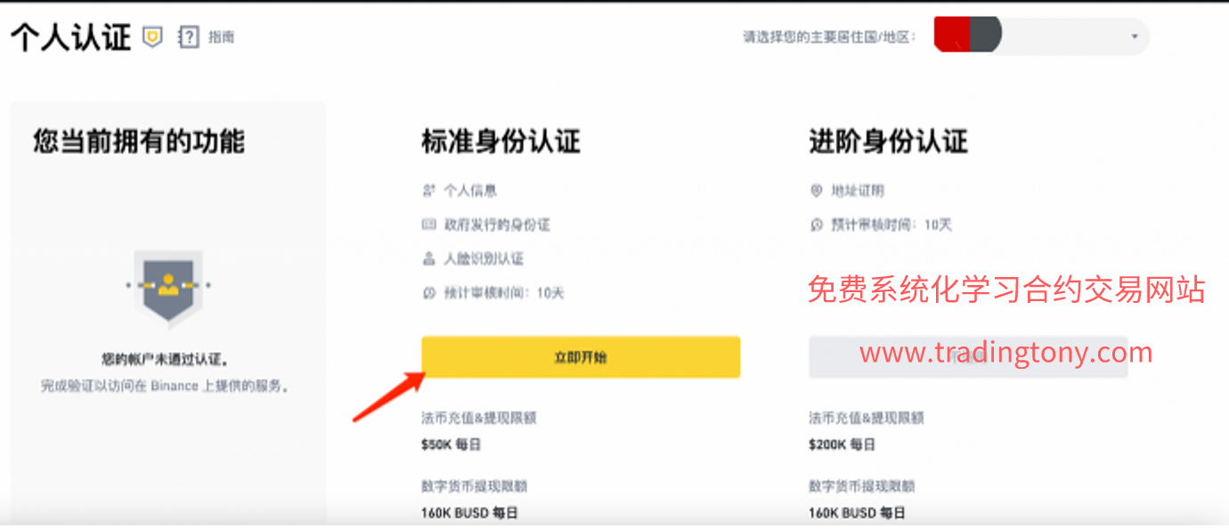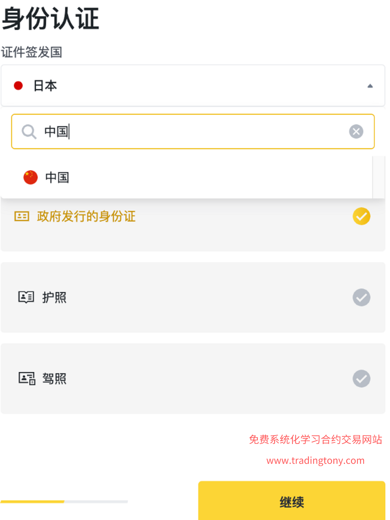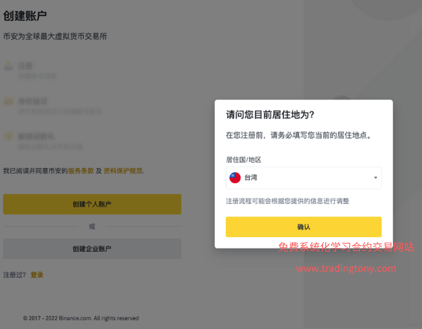 - 注册居住地选台湾, 身份认证(kyc)的时候选中国
